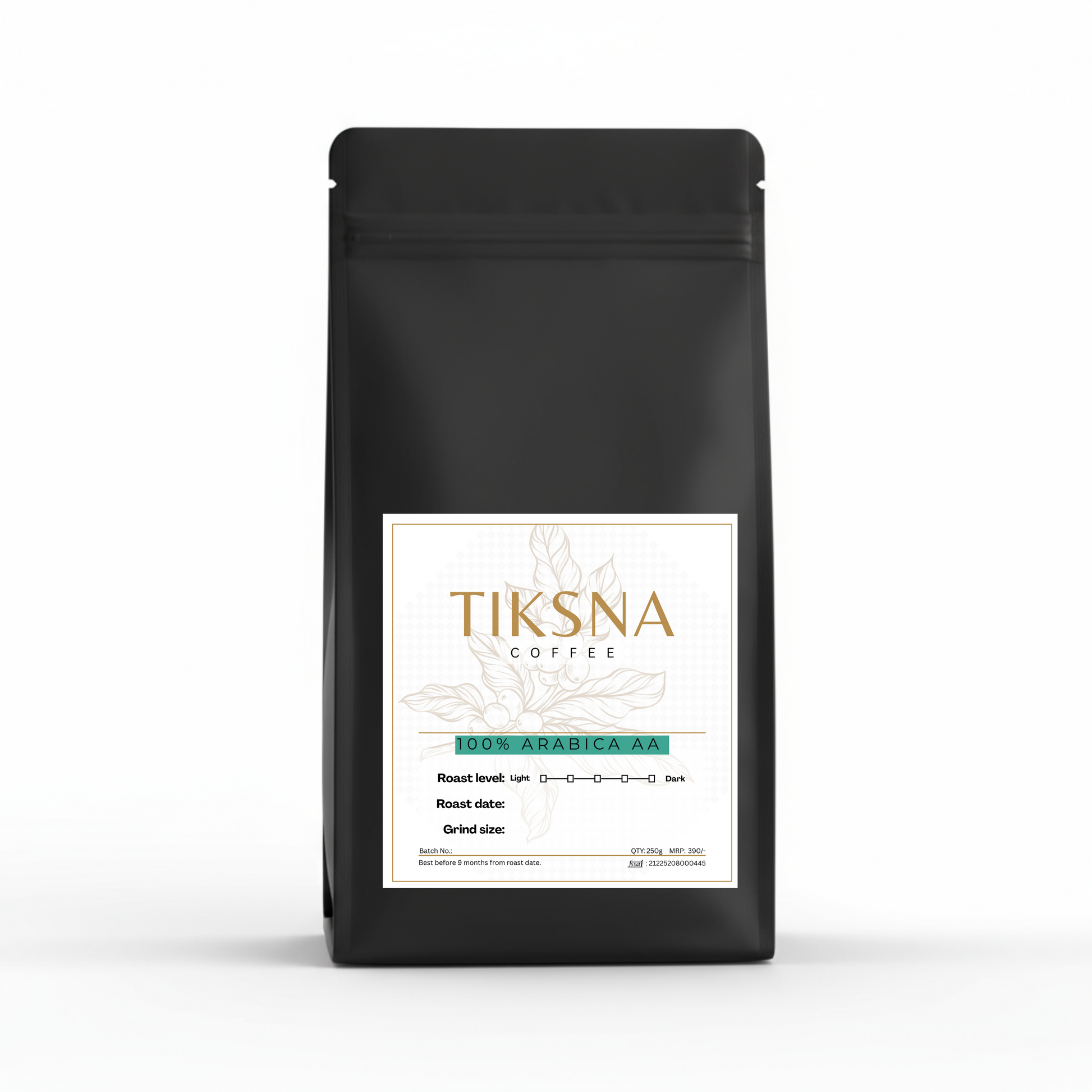 Our 100% Arabica AA Grade coffee showcases the elegance and complexity of Indian high-grown Arabica beans. Hand-harvested from elevations between 1,000–1,400 meters, these beans are washed and sun-dried to preserve their clarity, brightness, and natural sweetness.